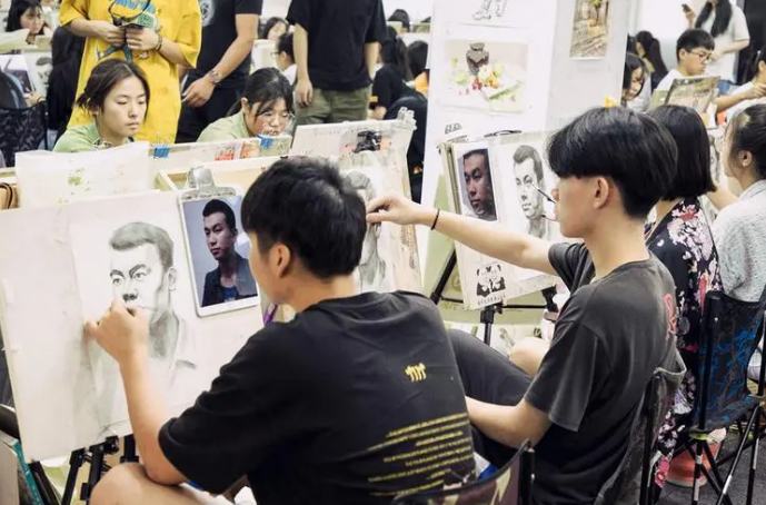 现如今考美院的学生可分四种,第一种是不知自已有无艺术天赋,拼文理科大学又无出路,所以选择艺术类大学(文化课要求较低)来投报。第二种是自己想不想学不知道,只是家长年轻时酷爱过艺术又未能如愿,于是把希望寄托在孩子身上。第三种是听人说学艺术将来可以挣大钱,于是,不管三七二十一,学上就是。第四种是学生发自内心想学,以至发展到热爱的程度,应当说这四种学生都有成功的希望,只是后者希望要大一些。对于艺术才能来说,有人先天有,也有后天来,很难讲谁行谁不行,要说成功与否,只能看谁学的得不得法,得法者事可成。