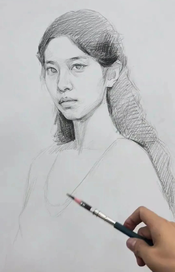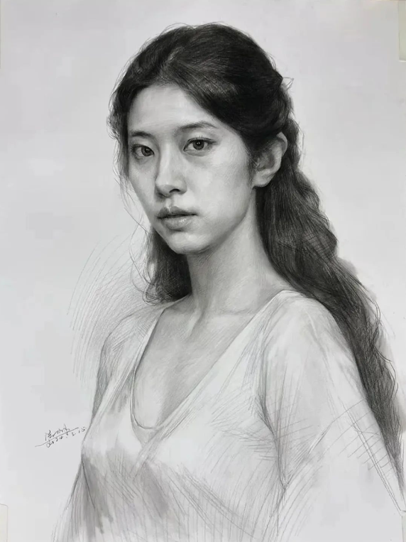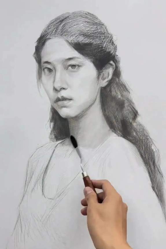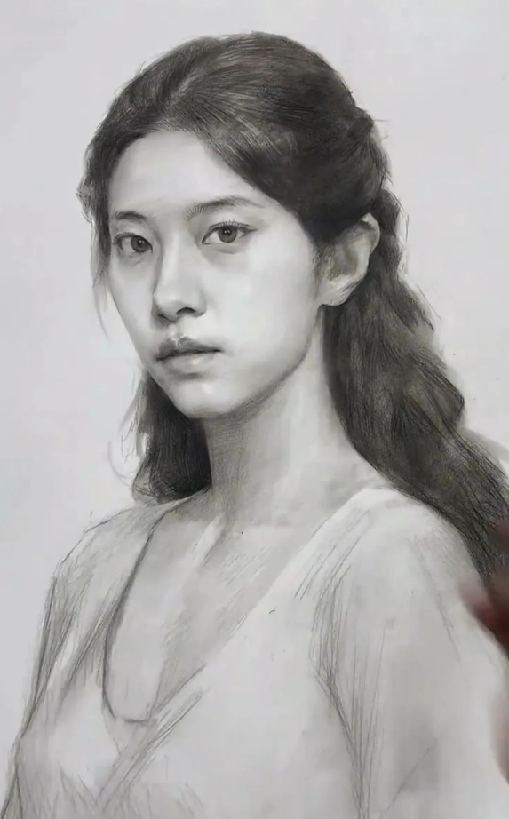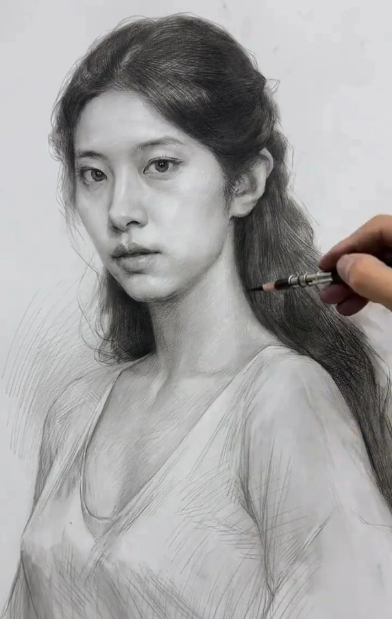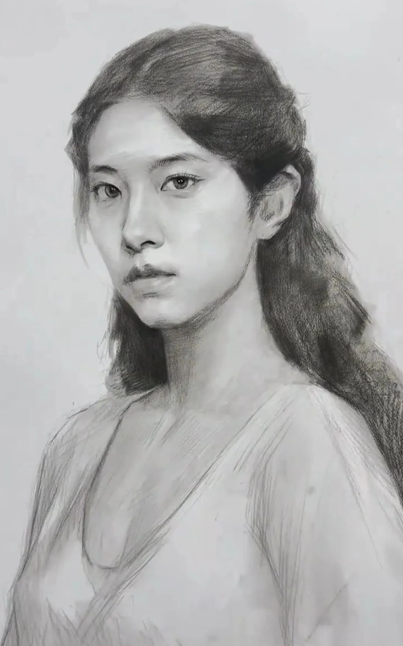 在光影处理方面,画家巧妙地运用了明暗对比,使得女生的面部轮廓和五官更加立体生动。眼神的刻画尤为传神,仿佛能够洞察人心,透露出女性的温柔与坚韧。