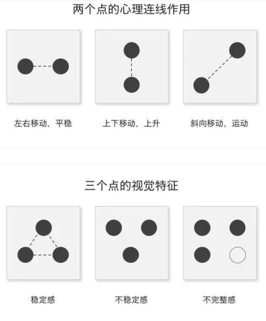④当点处于左上端和左下部时,让人产生运动感和不稳定感,点处于左下部时不稳定感更为强烈。