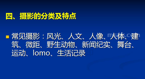 摄影”Photography—一词来源于西方,源于拉丁语photo(光)graphy(描绘)两个词的重新组合,意思是“用光描绘”,是1839年法国人达盖尔发明摄影术的时候,英国科学家赫谢尔爵士给这种新技术的名字。摄影: 是通过胶片的感光作用,用照相机拍下实物影像,通称照相,随着科技的进步,目前记录影像的载体主要是CCD CMDS,但摄影的特征没有变,是真实的记录。