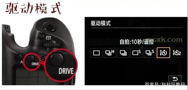 按此键是可以选择单拍/连拍或者延时拍摄等。单拍就是按一下快门就拍一张照片;连拍主要运用于抓拍运动的物体,延时拍摄则是,比如我们可以设置5S的时间,然后按下快门,相机就会开始倒计时,5s后才会拍照,比较适合拍摄全家福等。
