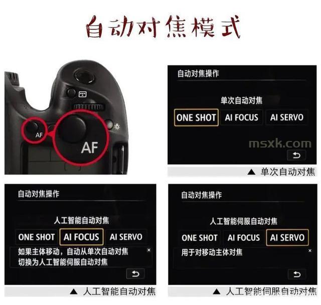 按此键,是可以选择三种对焦模式,分别是单次对焦,人工智能自动对焦和人工智能伺服自动对焦。