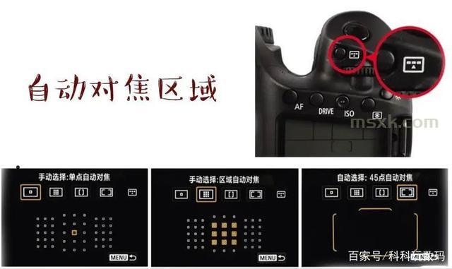 连续的按这个键,是可以选择单点自动对焦/区域自动对焦/大区域自动对焦和45点自动对焦。