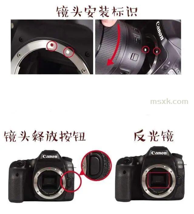 使用有白点标识的镜头时候,镜头白点对准机身白点,放入后顺时针旋转镜头直到听到“咔”的一声,就表明镜头与机身成功连接,红点也是如此。