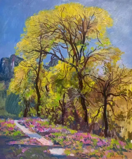 (5)在构图时,除了分清层次外,还要注意对自然景物进行概括。所谓概括就是对自然界作减法处理。减去一些层次和细节。在我们表现自然景观时,不可能做到把自然界的所有的物体都表现出来,对着自然界一枝一叶、一点一滴地描绘是绝对做不到的。必须进行必要的筛选、取舍、加减法、集中概括处理对象。